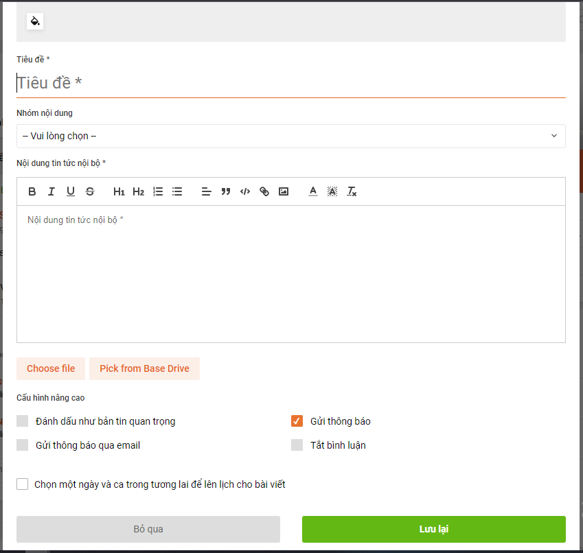 Nội dung tin tức nội bộ: nhập nội dung của tin